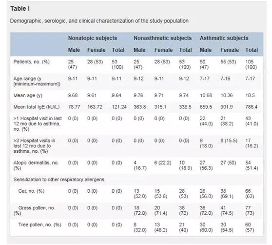 JACI:哮喘和非哮喘兒童IgE對螨蟲組份不同的識別能力