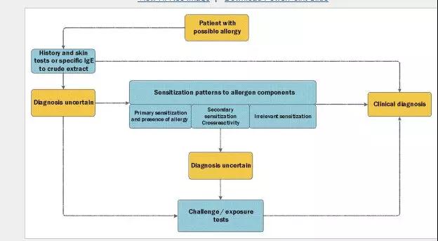 治療過敏性患者面臨的主要挑戰(zhàn)是區(qū)分無關(guān)的致敏和臨床過敏。如果病史與常規(guī)皮膚針刺試驗(yàn)或?qū)Υ痔嵛锏奶禺愋訧gE的聯(lián)合不能確定診斷,一個(gè)好的替代方法是使用暴露試驗(yàn)(鼻腔和結(jié)膜激發(fā)試驗(yàn)或口腔食物激發(fā)試驗(yàn))。雖然對(duì)病人來說,鼻腔和結(jié)膜的激發(fā)不比食物激發(fā)試驗(yàn)費(fèi)力和繁雜,但在日常生活中并不常用。除了標(biāo)準(zhǔn)化問題之外,缺乏國家監(jiān)管機(jī)構(gòu)注冊(cè)的挑戰(zhàn)性試驗(yàn)的致敏提取物可能會(huì)妨礙這些試驗(yàn)的應(yīng)用。過敏原組份的可用性為臨床醫(yī)生提供了更好地識(shí)別臨床相關(guān)敏感性的工具。對(duì)于兒童的食物過敏尤其如此,但是Kack et el7的研究表明在吸入物過敏的情況中也可以適用。分析過敏原組份IgE模式的作用可能因過敏原而異,但越來越多的研究支持在診斷過程中確定特定過敏原的IgE水平的附加值。盡管這項(xiàng)由Kack等人進(jìn)行的研究是IgE對(duì)犬類組份的致敏模式的確定,可能有助于識(shí)別真正的過敏反應(yīng),但這并不意味著只有單一的標(biāo)志物可以檢測(cè)臨床相關(guān)性。通過鼻或結(jié)膜激發(fā)試驗(yàn)比較敏感性和特定組份的方法,對(duì)鑒別其他吸入物過敏患者的相關(guān)過敏原也有價(jià)值。根據(jù)可能的過敏原,分析過敏原組份的IgE模式可能有助于過敏的診斷。