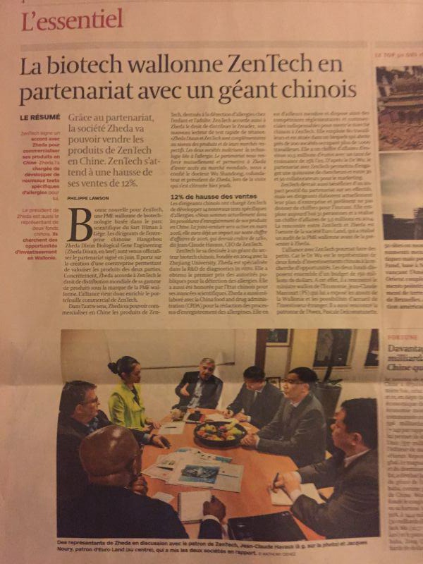 報(bào)道浙大迪迅與比利時(shí)Zentech S.A.公司合作